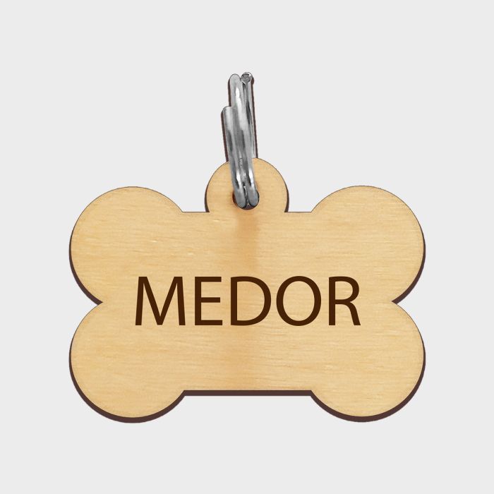 Achetez cette Jolie petite Médaille gravée en forme d'os en bois écologique issue de forêt labellisée PEFC c'est le cadeau a faire à votre chou-pet !