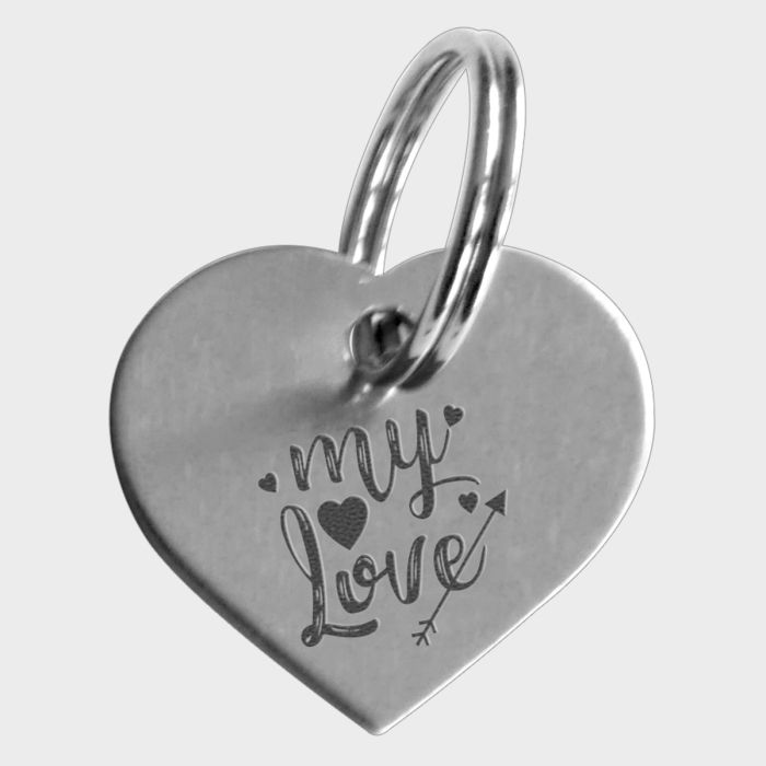 Pour faire plaisir à votre chat ou votre chien, opter pour cette jolie médaille gravée en métal argenté en forme de coeur. Vous pouvez la personnaliser avec le nom de votre animal, le texte de votre choix et y ajouter des coeurs, des étoiles et bien d'autres choses encore que vous retrouver dans notre bibliothèque de pictogrammes.