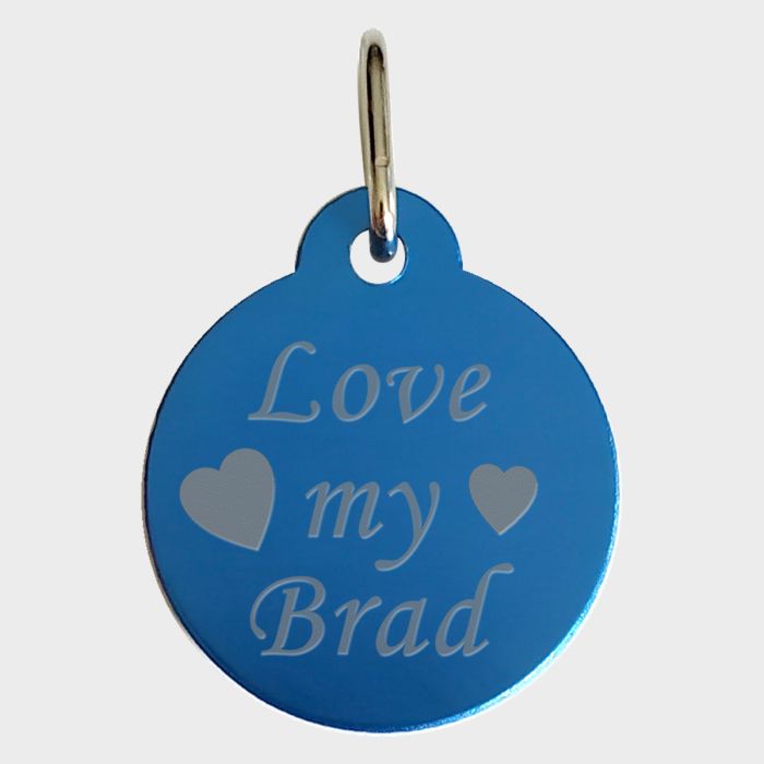 Médaille gravée en métal bleu. Diamètre de 27 mm pouvant convenir aussi bien au chat qu'au chien. Votre chat ou votre chien à de jolis yeux de couleur bleu pourquoi ne pas les assortir avec sa médaille gravée bleu. De par sa couleur cette jolie médaille gravée est très pratique lorsque vous souhaitez identifier rapidement les mâles des femelles au milieu d'une portée.