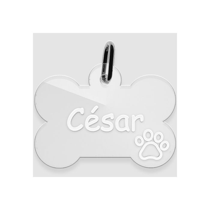 Votre personnalisation sur-mesure sur cette très jolie médaille gravée en forme d'os pour votre chat ou votre chien. Un très joli bijou pour animal utile et pas cher.